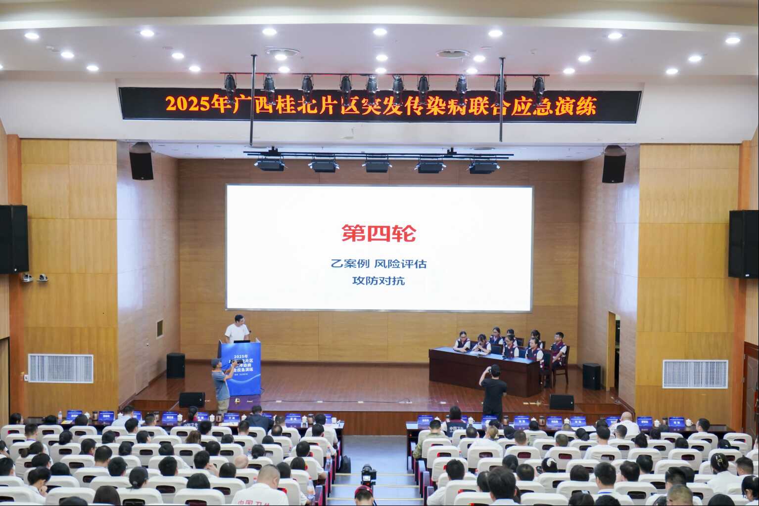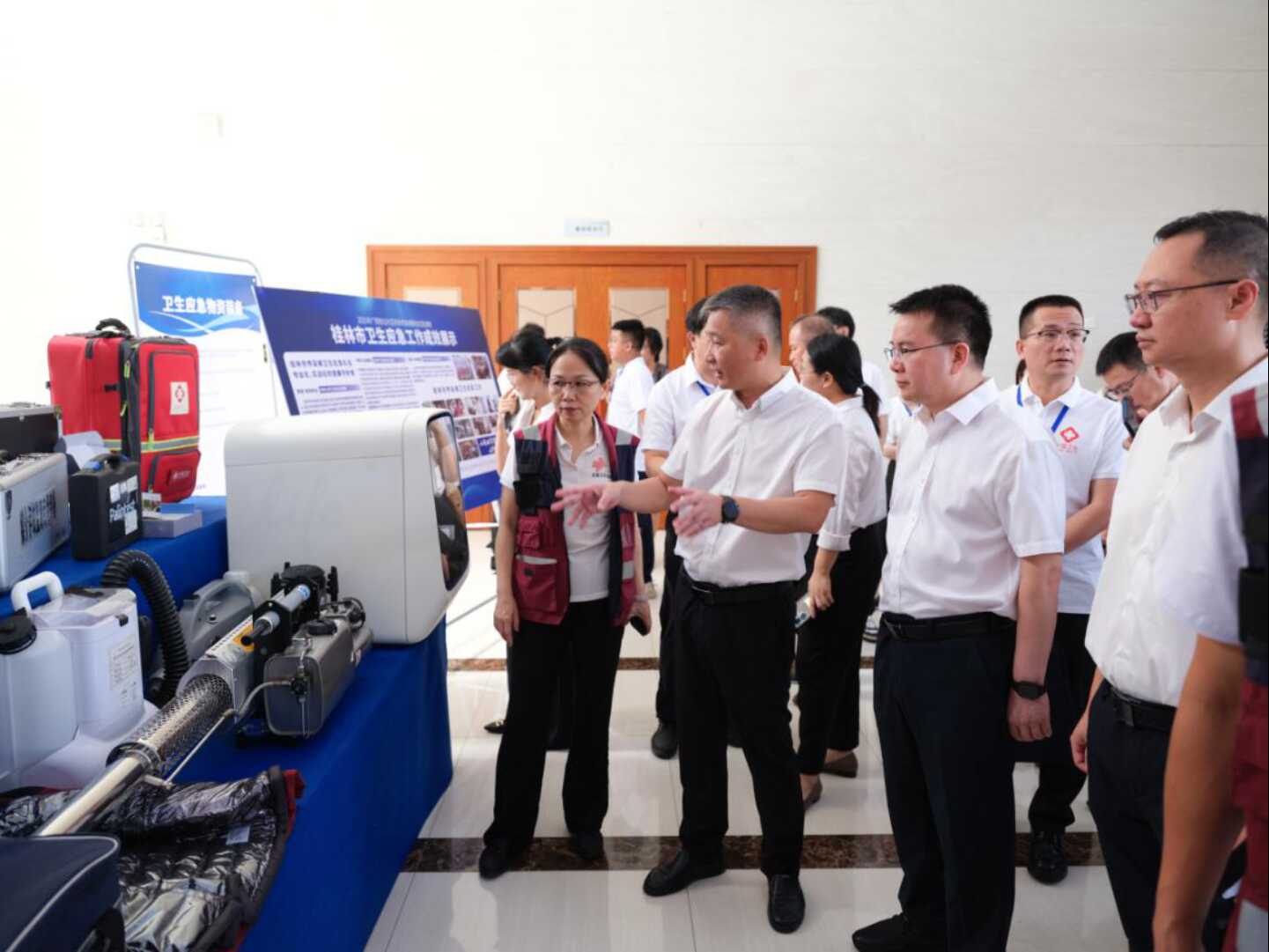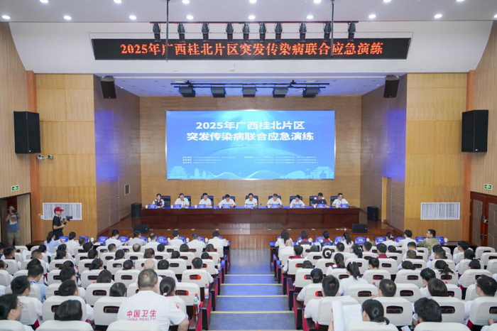 为了进一步推动区域传染病疫情应急处置能力从单一处置向协同应对转型升级,2025年7月17日,由自治区疾控局与桂林市人民政府联合主办,桂林、柳州、来宾、河池四市卫生健康委、疾控局共同承办的广西桂北片区突发传染病联合应急演练在桂林市成功举行。桂林市人民政府二级巡视员邹玉章,自治区疾控局党组成员、副局长王盛,桂林市卫生健康委党组书记、主任戴波出席本次活动。桂林市疾控局局长、桂林市卫生健康委党组成员、副主任(兼)于晖主持演练开幕式。