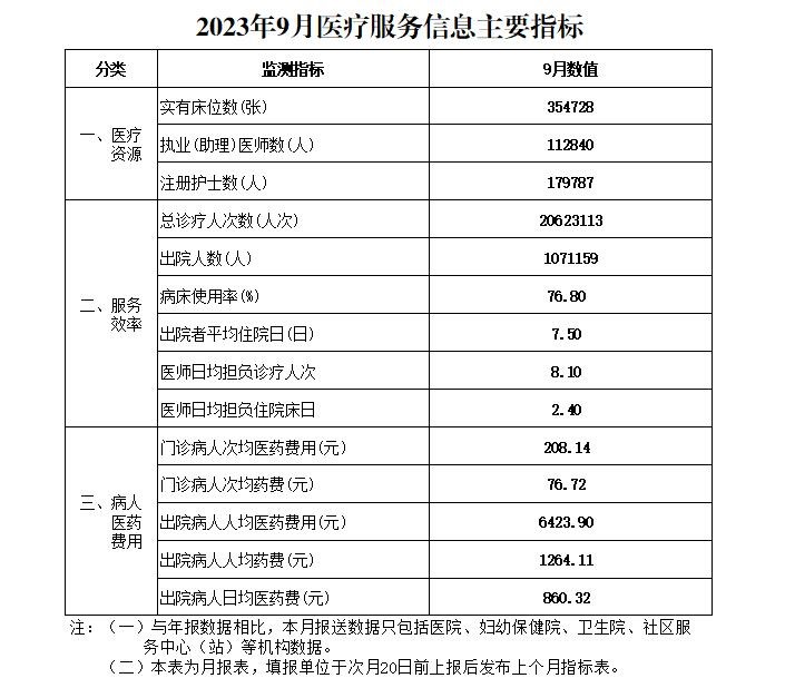 2023年9月份医疗服务信息发布指标表