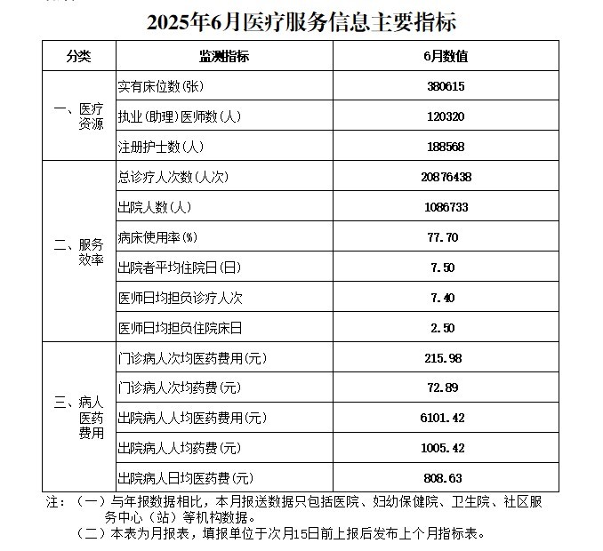 2025年6月份医疗服务信息发布指标表
