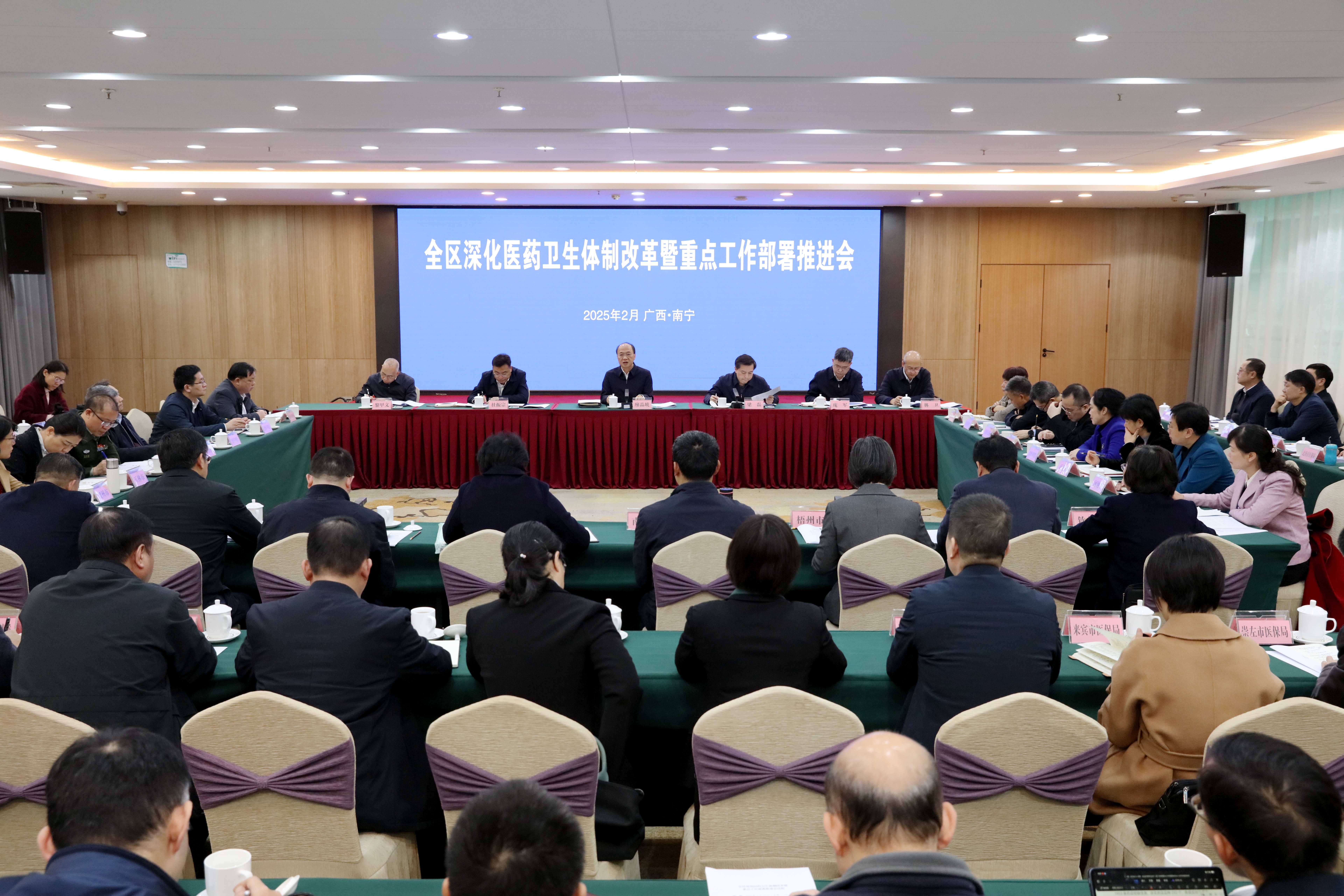 2025年2月17日,自治区人民政府在南宁召开全区深化医药卫生体制改革暨重点工作部署推进会,贯彻落实党中央、国务院自治区党委、政府关于深化医药卫生体制改革决策部署,交流推介各地先进经验做法,部署近期深化医药卫生体制改革以及卫生健康、医疗保障、中医药、疾病预防控制领域重点工作任务。自治区副主席廖品琥出席会议并讲话,自治区政府副秘书长梁磊主持会议。