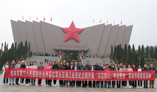 为缅怀革命先烈,传承红色基因,深入理解湘江战役的历史地位和重要意义,弘扬伟大长征精神,强化担当实干,11月6日上午,桂林市第三人民医院组织各党支部书记、委员共计35人赴全州县红军长征湘江战役纪念园开展“不忘初心、牢记使命”革命传统现场教育活动。