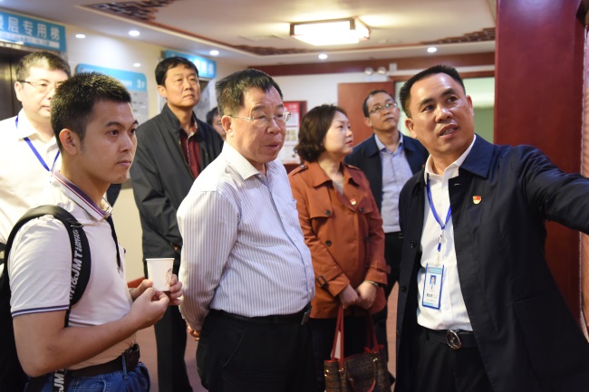11月14日下午,自治区党委“不忘初心、牢记使命”主题教育领导小组第七巡回指导组组长、桂林电子科技大学原党委书记周怀营,广西大学纪委副书记罗国斌,自治区发展改革委机关党委四级主任科员陈桥,自治区退役军人培训中心党办主任陈敏一行4人在广西中医药大学党委书记尤剑鹏,党委常委、组织部部长唐振宇,组织部副部长吴光的陪同下莅临广西中医药大学附属瑞康医院调研指导“不忘初心、牢记使命”主题教育工作。医院党委书记高宏君,院长唐友明,副院长庞刚、韦思尊、陈锋、宋策陪同调研,医院党委委员、主题教育领导小组成员代表、各党总支部书记参加座谈。