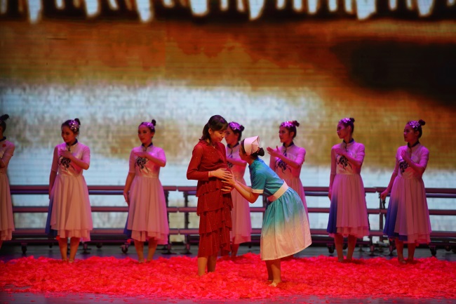 舞蹈《希望——点亮新生》展现了一名孕妇突发病情、性命垂危时,白衣天使们奋力与病魔死神展开一场生死营救,用温暖的双手迎接新生命到来的情景,演员们的优美舞姿和感人的表演赢得观众阵阵掌声。