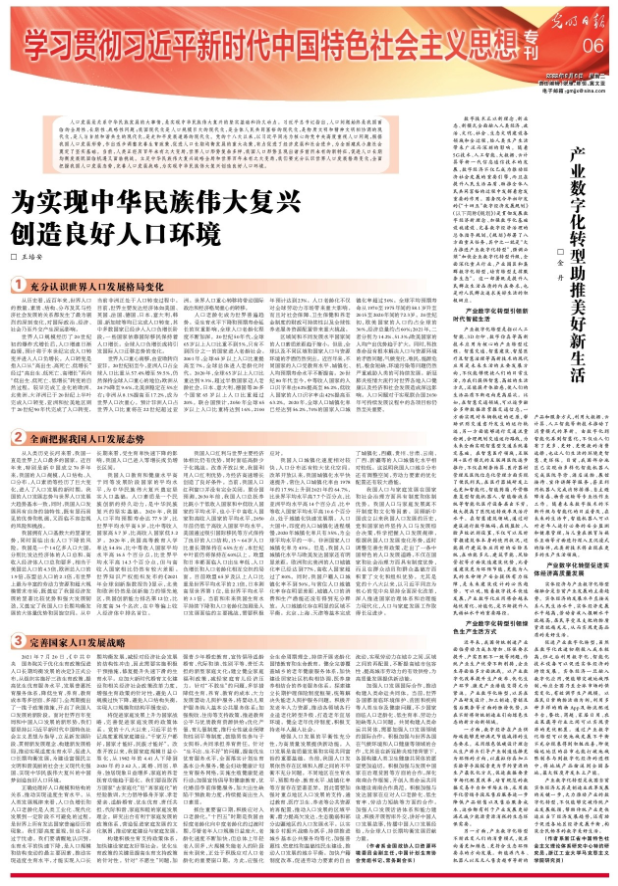 《光明日报》“学习贯彻习近平新时代中国特色社会主义思想专刊”(2022年9月6日06版)刊发全国政协人口资源环境委员会副主任、中国计生协党组书记、常务副会长王培安署名文章《为实现中华民族伟大复兴创造良好人口环境》。文章立足中华民族伟大复兴战略全局和世界百年未有之大变局,客观分析了我国当前及未来人口对高质量发展的强大支撑潜能,对人口红利、人口老龄化等热点问题进行了科学阐释,比较分析了世界主要经济体的人口发展能力,凝聚了社会共识,坚定了走中国特色人口发展道路的信心。文章强调,要坚持以习近平新时代中国特色社会主义思想为指导,立足新发展阶段、贯彻新发展理念、构建新发展格局,推动实现适度生育水平,促进人口长期均衡发展,为建设富强民主文明和谐美丽的社会主义现代化强国、实现中华民族伟大复兴的中国梦创造良好人口环境。