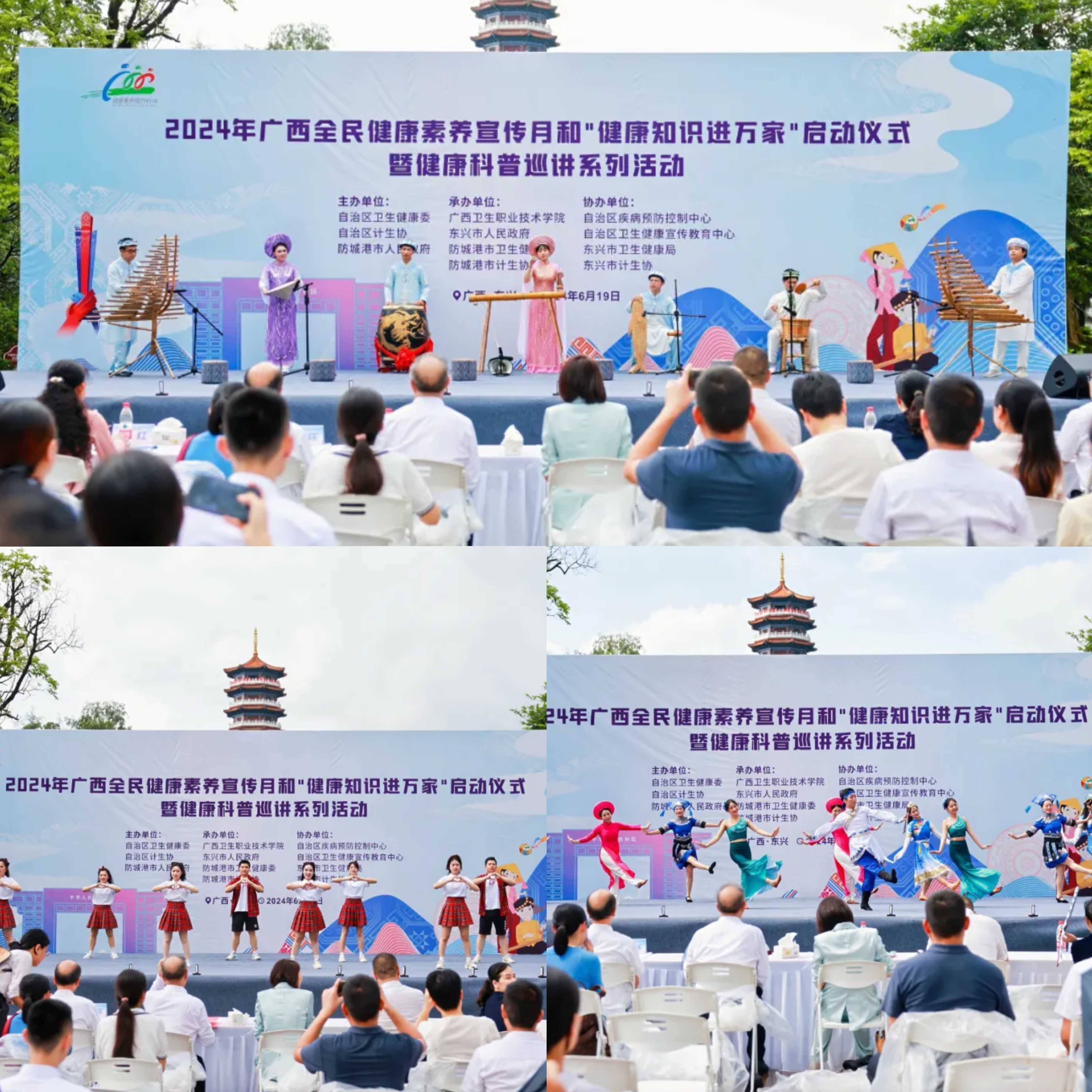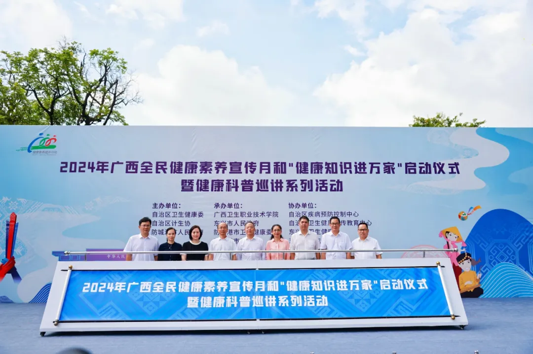 根据国家卫生健康委关于全民健康素养宣传月和健康知识进万家活动部署,6月19日,由自治区卫生健康委、自治区计生协、防城港市人民政府联合主办的2024年广西全民健康素养宣传月和“健康知识进万家”启动仪式暨健康科普巡讲系列活动在防城港市东兴市举行。自治区卫生健康委二级巡视员陈松、防城港市二级巡视员褚锡环出席活动并致辞,自治区计生协、防城港市卫生健康委、东兴市相关负责人,自治区、防城港市、东兴市等各级医疗卫生机构专家、相关医务人员等70多人参与活动,现场服务群众近千人次。