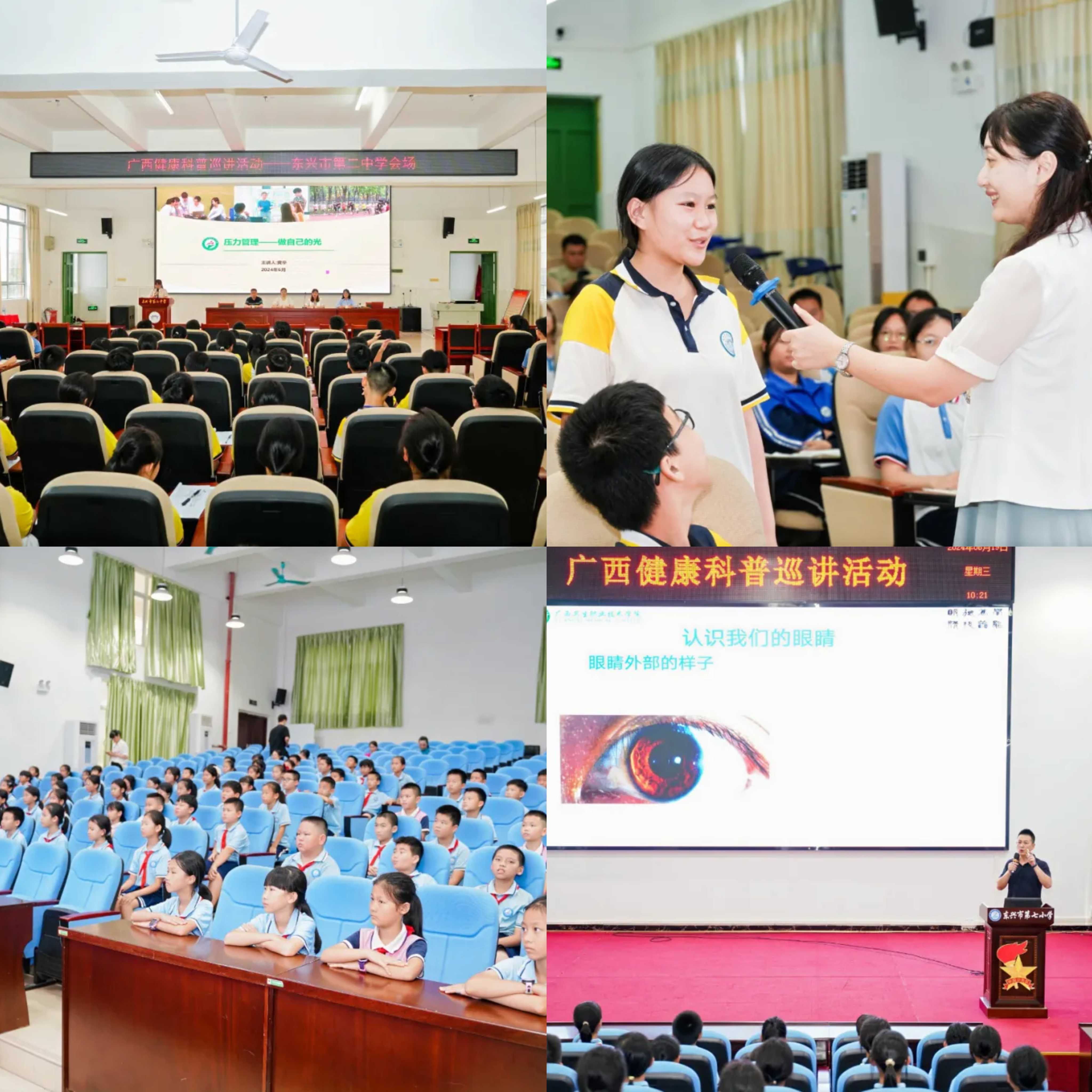 针对青少年群体眼健康突出问题,在东兴市第七小学举办预防近视健康讲座。在东兴中学、东兴市第二中学,通过健康讲座、交流答疑等方式,围绕中学生常见心理健康问题进行深入浅出的专业健康辅导。