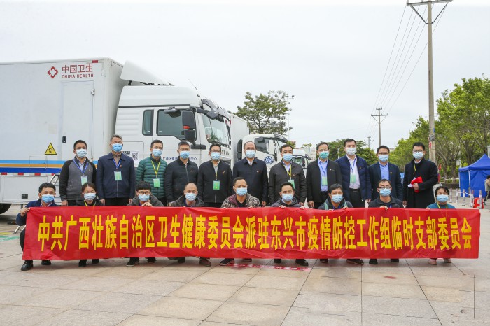 2021年12月20日东兴市暴发本土新冠肺炎疫情以来,自治区卫生健康委党组高度重视,坚决贯彻落实自治区党委相关决策部署,第一时间派出工作组赶赴东兴处置疫情,并在东兴市疫情防控指挥部成立临时党支部,切实发挥党组织的战斗堡垒作用和党员的先锋模范作用,坚决打赢新冠肺炎疫情防控阻击战,圆满实现自治区党委提出的“12000”工作目标。