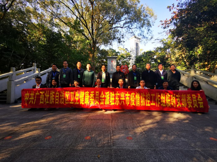 2022年1月2日,受临时党支部书记廖品琥的委托,自治区卫生健康委一级巡视员、临时党支部副书记麦家志组织工作组全体党员干部开展党日活动,先后到中越人民革命烈士纪念碑、东兴第一党支部纪念碑前敬献花篮、参观瞻仰,切实从革命斗争和红色传承中汲取奋进的力量,坚决防止疫情扩散蔓延。随后,工作组还在东兴市疫情防控指挥部召开工作总结会,全面总结此次疫情发生以来工作经验及成效,详细分析存在的问题及根源,进一步增强了做好疫情常态化防控的信心,进一步坚定了守好祖国“南大门”的决心。