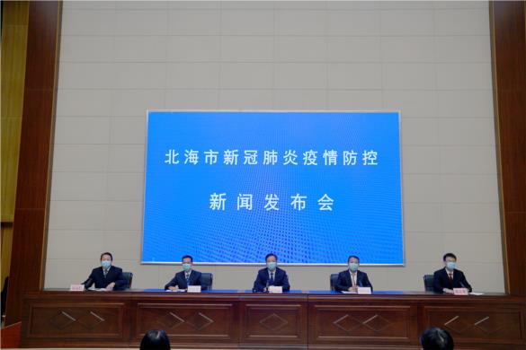 大家上午好!欢迎出席北海市新冠肺炎疫情防控新闻发布会,出席今天新闻发布会的有:北海市人民政府副市长、市疫情防控指挥部副指挥长孙环志先生,北海市工业和信息化局党组书记、局长梁振威先生,北海市海城区人民政府常务副区长、海城区新冠肺炎疫情防控工作指挥部副指挥长郭立冬先生,北海市卫生健康委员会副主任张伟春先生,他们将向大家介绍我市疫情防控的最新情况,同时回答记者的提问。今天到场的媒体有新华社、中国健康教育中心、广西日报社、北海日报社、北海广播电视台、北海新闻网等媒体,感谢各位媒体记者朋友的到来!
