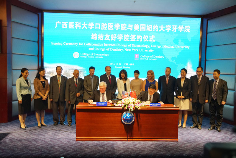在此届论坛期间,学院进一步加强与东盟各国高校开展口腔医学教育合作,增加其学生留学中国的机会,共同实现双赢发展的新跨越。除与东盟各国在口腔教育教学开展交流与合作外,学院在论坛期间分别与纽约大学牙学院以及哥伦比亚大学牙学院缔结友好学院。通过构筑“友好学院”,深化两校师生在口腔医学领域的交流与合作,促进两校国际化发展。通过充分利用外部优质教育资源、吸收先进教育经验并内化,提升教师专业水平,促进高素质口腔医学人才培养,创新学院特色,打造学院亮点,努力实现教育教学质量的跨越式发展。