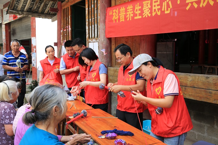 此次活动中,张占江一行与独镜村广大村民齐聚村戏台沧桑楼前,开展具有中医药特色的“五子养生锤”制作体验活动,让村民们感受到了中医药文化的博大精深,还通过赠送中医药香囊的方式,向村民们传递健康长寿的美好祝愿和中医药健康理念。活动现场氛围热烈,在药园科普研学中心专业人员的耐心指导下,村民在欢声笑语中制作出了一个个精美的中药五子养生锤。村民们纷纷表示,这份特殊的节日礼物不仅让他们感受到了节日的温馨,也让他们对中医药文化有了更深的了解和认识。
