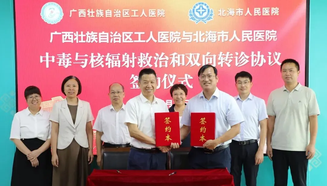 9月23日,广西工人医院与北海市人民医院签署《中毒与核辐射救治和双向转诊协议》及《广西尘肺病专科联盟合作协议》,并举行尘肺病专科联盟授牌仪式。广西工人医院党委书记吕炜,党委副书记、院长黄春吉等领导班子成员及相关科室负责人;北海市人民医院党委书记李曲、副院长陈耀智一行出席活动。