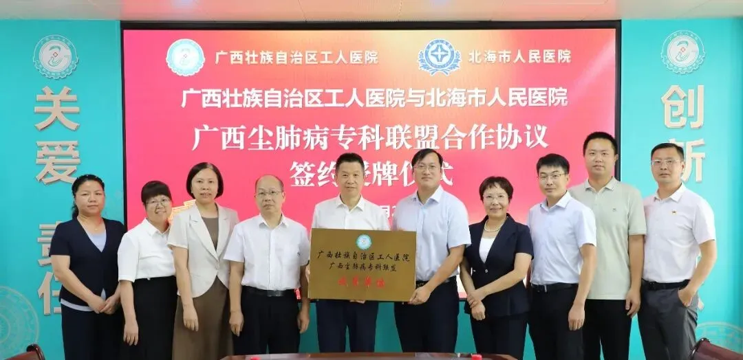活动中,双方签署两项协议,广西工人医院向北海市人民医院授予“广西尘肺病专科联盟成员单位”牌匾。此次合作标志着两家医院在重大公共卫生事件应急响应和职业病专科联盟建设方面进入新阶段,将为区域群众提供更加高效、专业的医疗卫生服务。