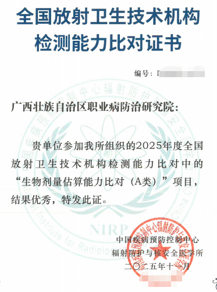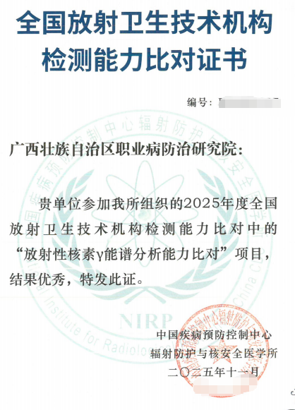 12月3日,中国疾病预防控制中心辐射防护与核安全医学所主办的2025年全国放射卫生技术机构检测能力比对总结会在福州圆满落幕。广西壮族自治区职业病防治研究院(广西壮族自治区工人医院)参与四项国家级能力验证,表现亮眼。