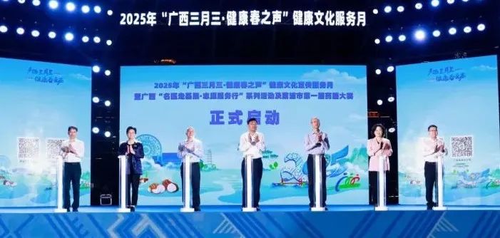 4月16日晚,2025年“广西三月三·健康春之声”健康文化宣传服务月暨广西“名医走基层·志愿服务行”系列活动及荔浦市第一届药膳大赛启动仪式在荔浦市成功举办。本次活动由自治区卫生健康委、自治区中医药局、自治区疾控局、桂林市人民政府主办,自治区疾病预防控制中心、桂林市卫生健康委、桂林市中医药局、荔浦市人民政府承办。自治区卫生健康委党组书记、主任杜振宗,桂林市人民政府副市长郑平出席启动仪式并致辞;自治区卫生健康委党组成员、疾控局党组书记、局长林卫,自治区卫生健康委党组成员、中医药局党组书记、局长黎甲文出席启动仪式;自治区卫生健康委、自治区中医药局、自治区疾控局相关处室负责人,14个设区市卫生健康委相关领导和负责宣传工作的科室负责人,区直、桂林市直有关医疗卫生机构领导和专家,荔浦市四家班子领导,健康文化作品展演演员,来自海南、四川、内蒙古、湖南、吉林、重庆等省、自治区、直辖市及广西区内相关单位参赛、参展、观摩的嘉宾,荔浦市各界干部群众共3000余人参加启动仪式。