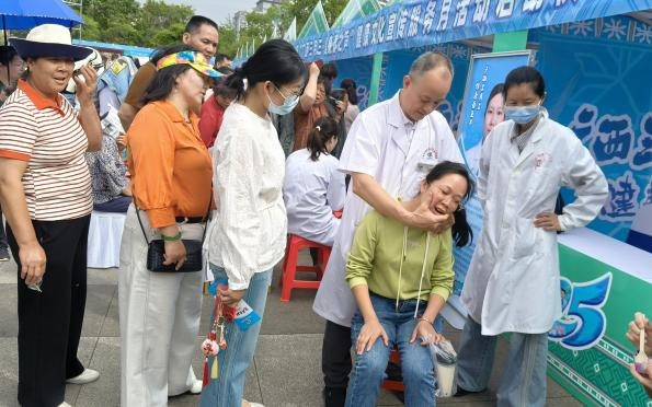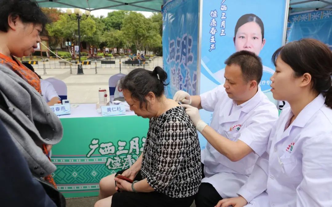 在滨江公园、桂东村义诊现场,医疗专家为市民提供诊疗和医技服务,中药拔罐、药线点灸等民族医药体验区排起长龙,78岁壮族阿婆紧握专家双手感慨:“没想到在家门口就能让专家来看病,希望专家们能多来几次!”