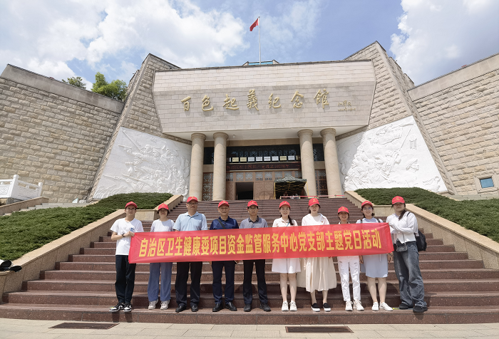 为庆祝中国共产党成立102周年,弘扬伟大建党精神,进一步加强中心全体干部职工爱国主义和革命传统教育,2023年7月4日,自治区卫生健康委项目资金监管服务中心党支部率中心党员干部职工及党外人士赴百色市“百色起义纪念馆”开展“七一”红色教育主题党日暨“群团共建扬监管红帆”活动。