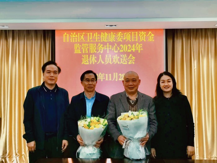 为体现“以人为本”的管理理念,切实做好人文关怀工作,近日,自治区卫生健康委项目资金监管服务中心举办退休人员欢送会,表达对两位新退休人员的感谢与关怀。中心党支部书记、主任梁宇晖及工会主席、副主任黄定贵出席活动并讲话,中心干部职工20余人参加活动。