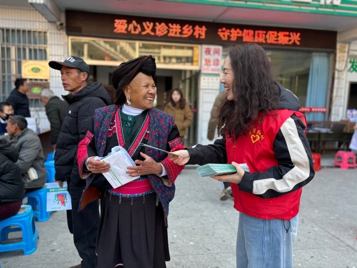义诊活动中,队员们耐心引导村民按顺序排队,协助医护人员测量血压、血糖等基础工作,向村民发放健康宣传手册、宣传讲解健康生活方式和疾病预防知识。